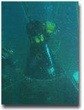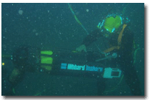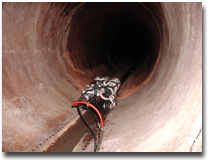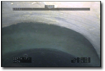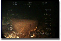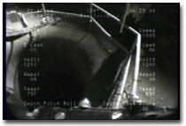 Internal and External Joint and Support Inspection of Ocean Outfall - (WMV Video 5.6MB) In this project, we used a powerful, 1,500-pound light work class ROV in the strong currents at the deep end of an ocean outfall over the edge of the continental shelf to inspect all supports, external joint conditions, and diffuser conditions. Then divers opened access manways to insert a smaller ROV for an internal inspection of the pipe joints, diffusers, and ball joints. |