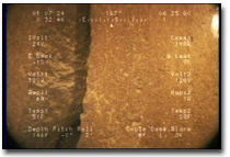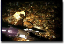 Videocapture of three-foot-wide rock (as measured on soar) in tunnel invert  | Sonar of rock trap showing fill level  |