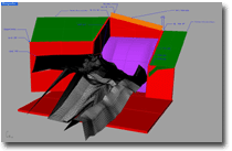 Sonar Measurement and Modeling Several sonar plots are joined in CAD with blueprint dimensions to produce models of debris buildup or structure deterioration. The sonar references the structure, and absolute measurements or relative measurements can provide a wide range of answers for a structure. |