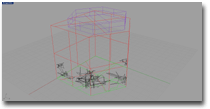 The ROV placed the sonar to plot the debris buildup against a lower outlet intake structure  | The structure was approximate in CAD and a diver-held sonar was used to map out failures inside a submerged support colum. The sonar plots showing material loss in the column are in black  |